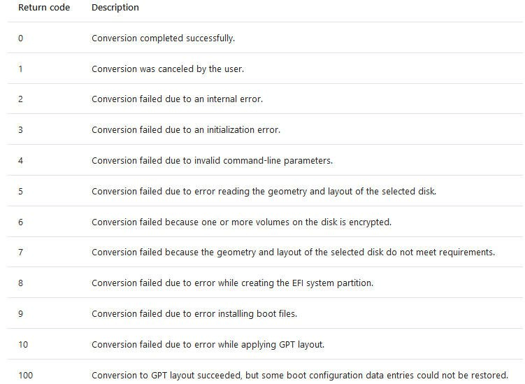 MBR2GPT /validate|convert[/disk:] [/logs:] [/map:=] [/allowFullOS]