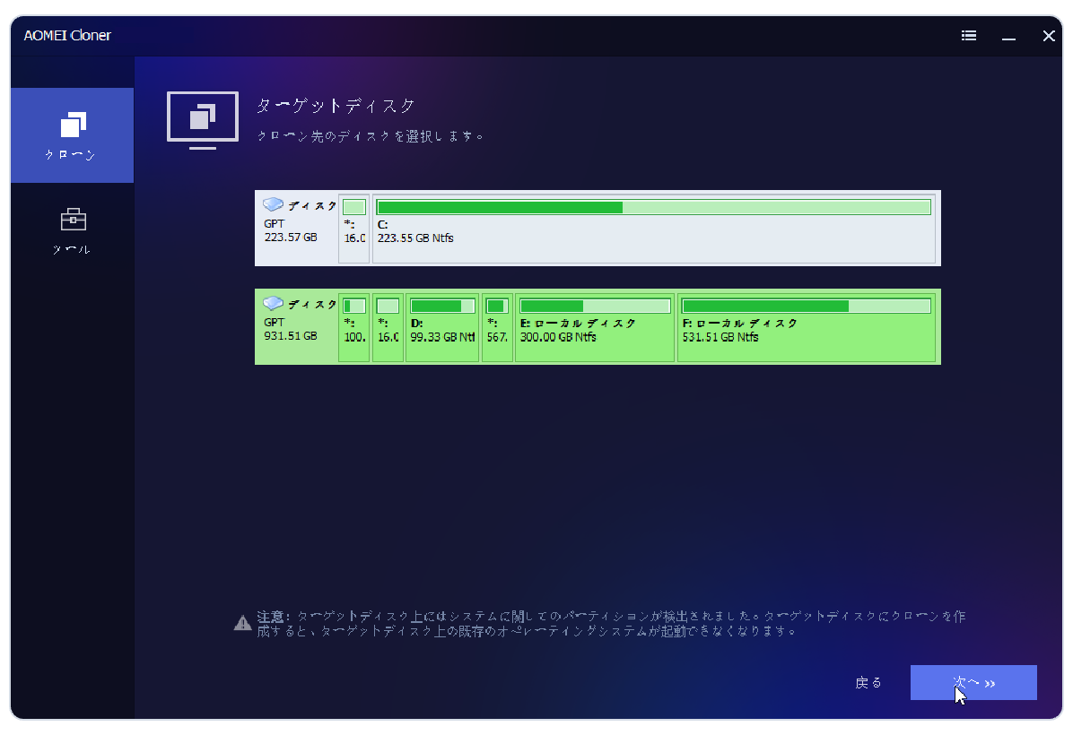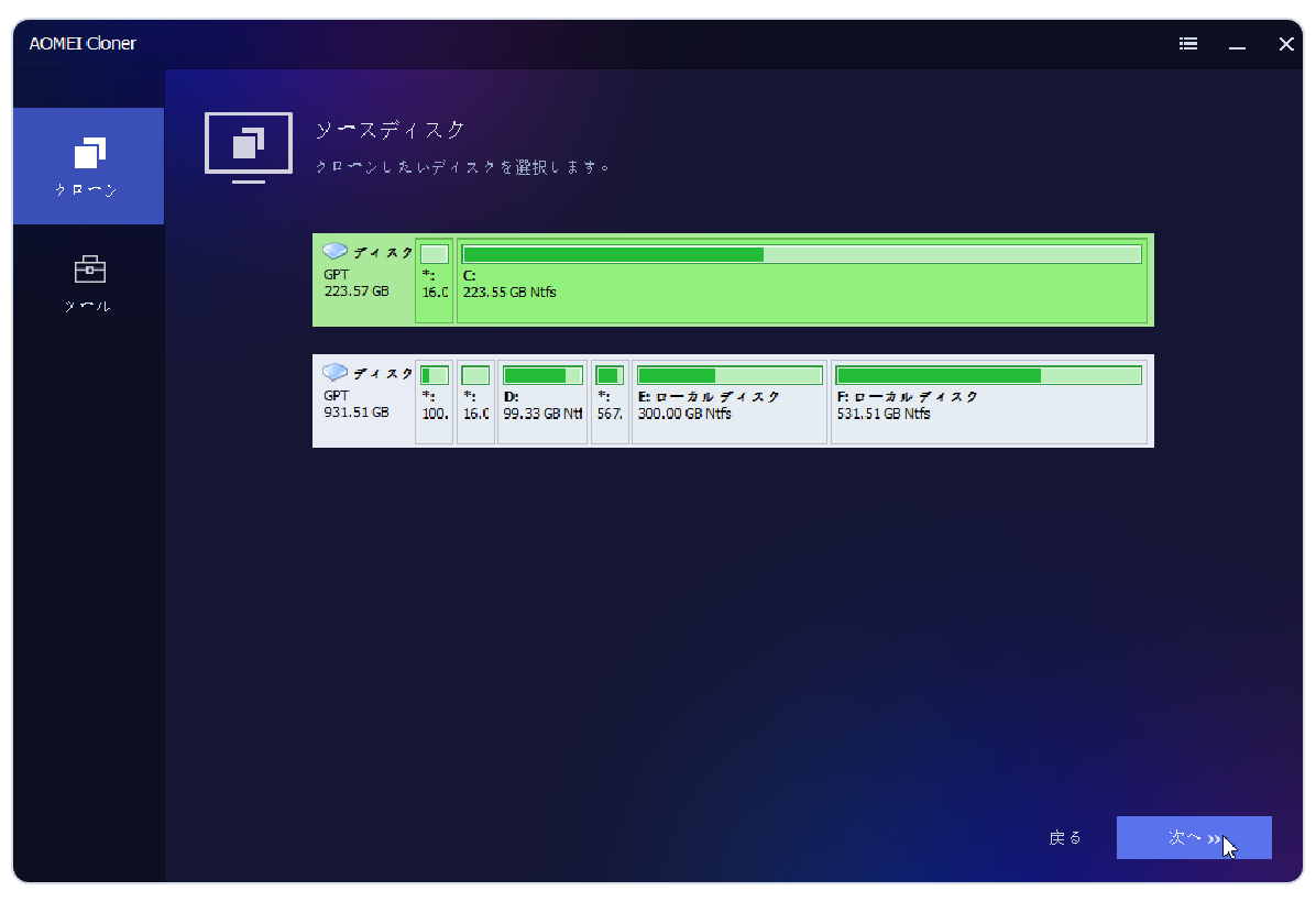 「AOMEI Cloner」を使えば、データを失わず再インストール不要で、小さい・古い・遅いディスクを簡単に大きい・新しい・高速のディスクへアップグレードできます。