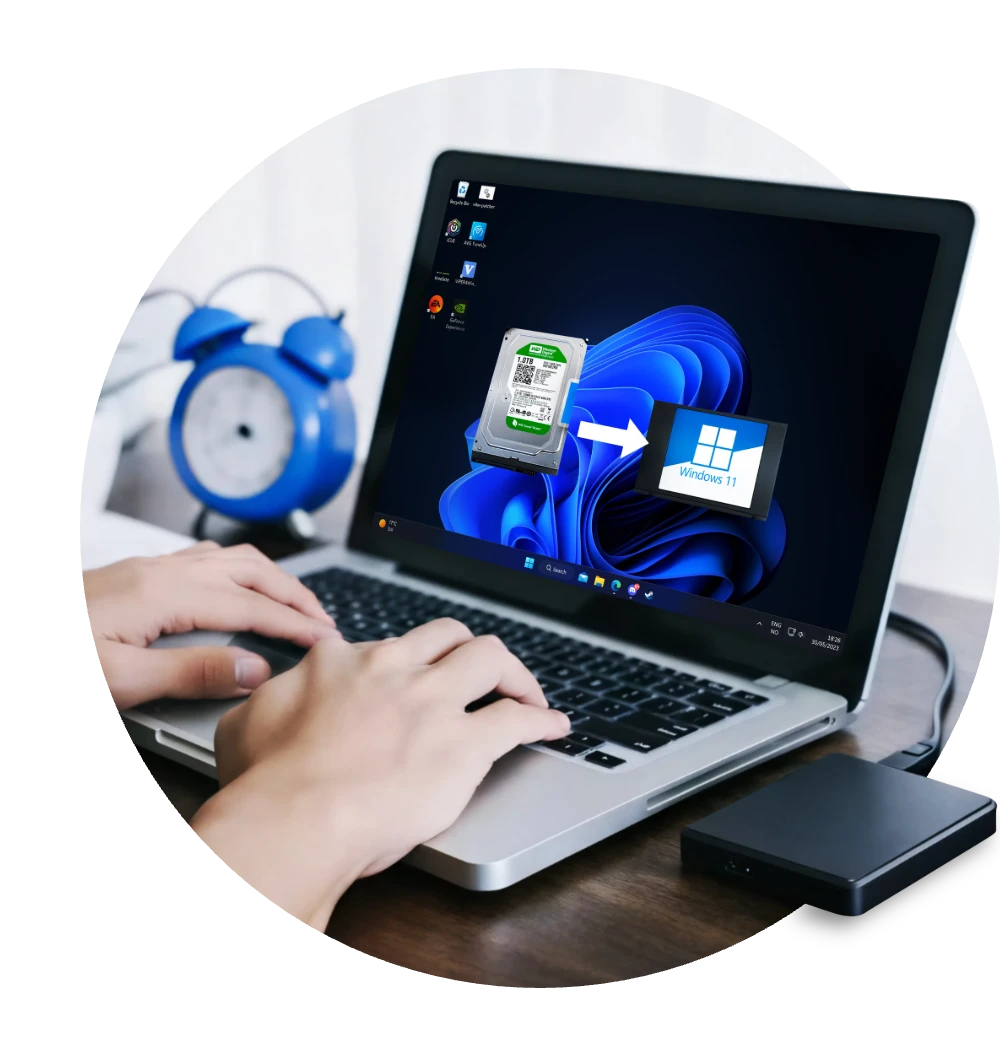 WindowsのOSと起動に必要なパーティションをそのままSSD/HDDへ移行できます。再インストールや初期設定のやり直しは不要で、短時間でこれまでの環境を維持したまま新しいディスクに切り替えられます。