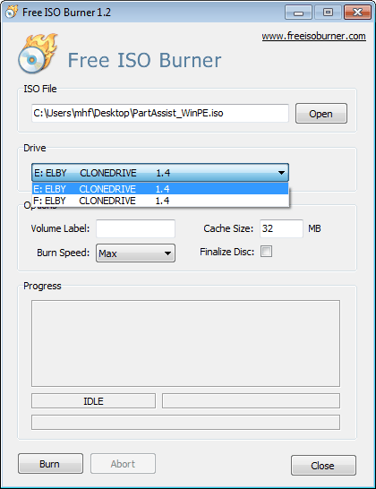 Free ISO BurnerでブータブルISOファイルをCD/DVDに書き込む